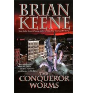 Aşa că iată-n dreapta ce mi-a adus azi poştaşul (făcându-şi simţită prezenţa la poartă doar graţie dihaniilor personale ce nu mai conteneau să latre). E vorba, ladies & gentlemen, de inegalabilul şi fenomenanul BRIAN KEENE, cu un roman horror rău de tot, cu râme gigantice pe copertă, intitulat adecvat THE CONQUEROR WORMS.