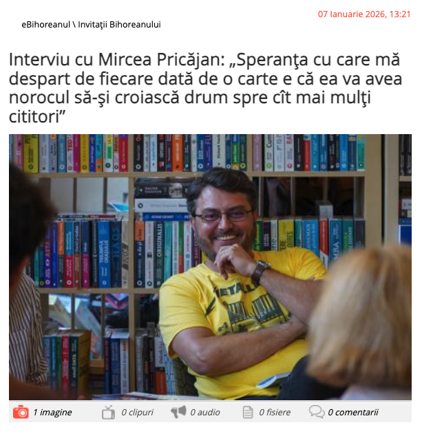 Realizat de scriitorul și criticul literar Dan-Liviu Boeriu, interviul reprezintă un preambul al lansării de vineri, 9 ianuarie, ora 18, unde Mircea Pricăjan va intra în dialog cu Miron Beteg și Dan-Liviu Boeriu.