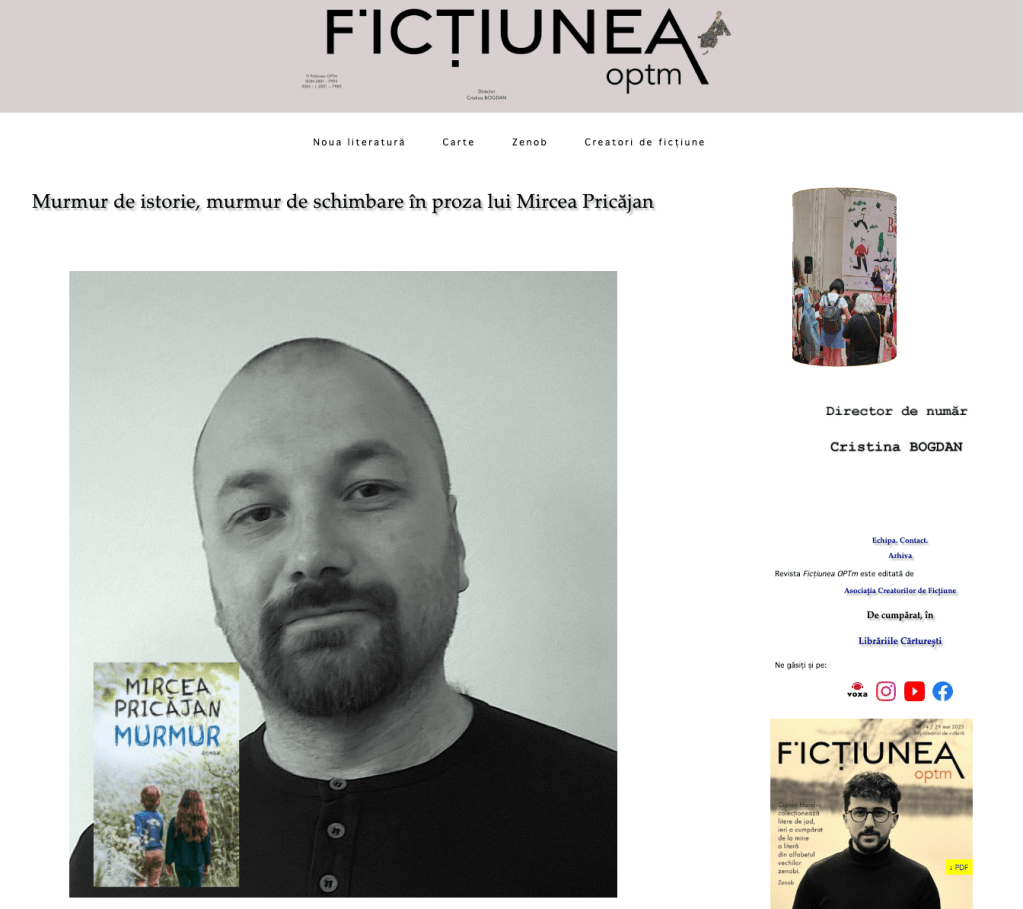 „Pentru cine îl cunoaște și-l urmărește, nu e nevoie de nicio recomandare, însă pentru cine nu a luat contact cu scriitura sa, romanul «Murmur», apărut anul acesta, la editura Humanitas, este exact ce trebuie pentru a-l trece pe lista autorilor de urmărit. Deoarece în cele două sute treizeci de pagini el se angajează într-un proces complicat de analiză a trei generații diferite, așezându-le reprezentanții în contextul cuvenit și punându-i să se confrunte fiecare cu problemele epocii sale, realizând astfel o împletitură de trei povești într-una singură.” [Citiți mai departe…]